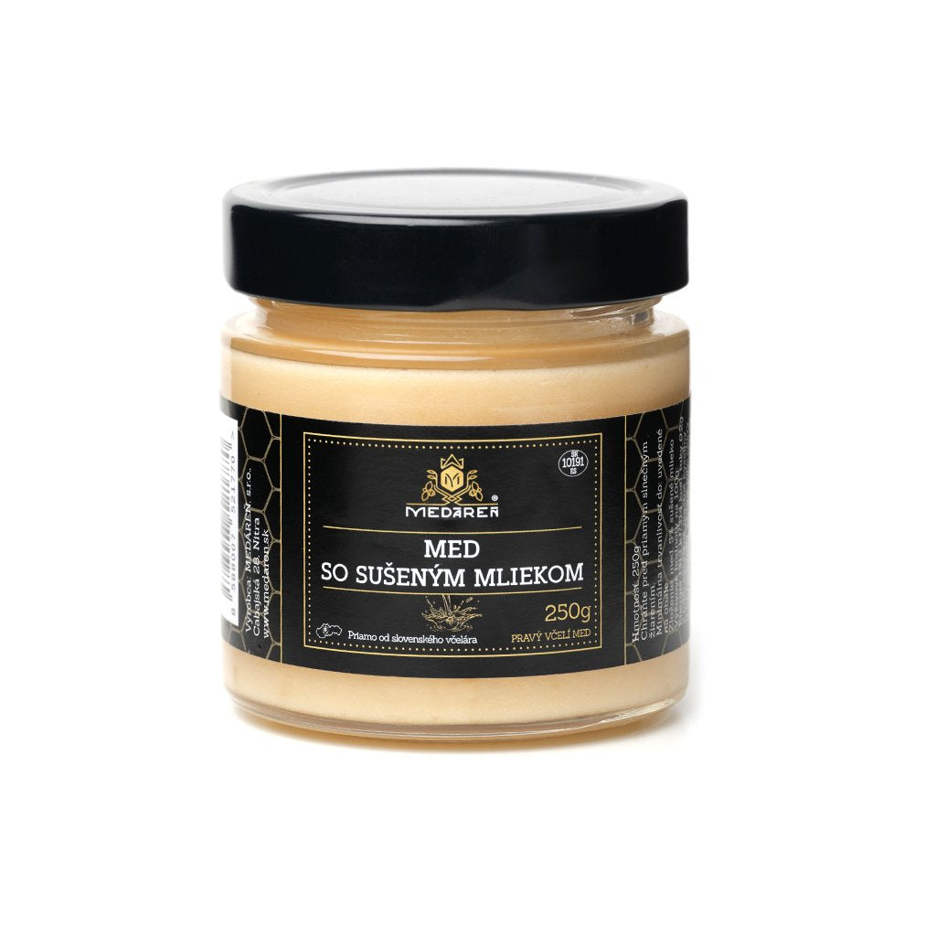 Na výrobu ochuteného medu so sušeným kozím mliekom sme použili kvalitný med z nášho rodinného včelárstva.