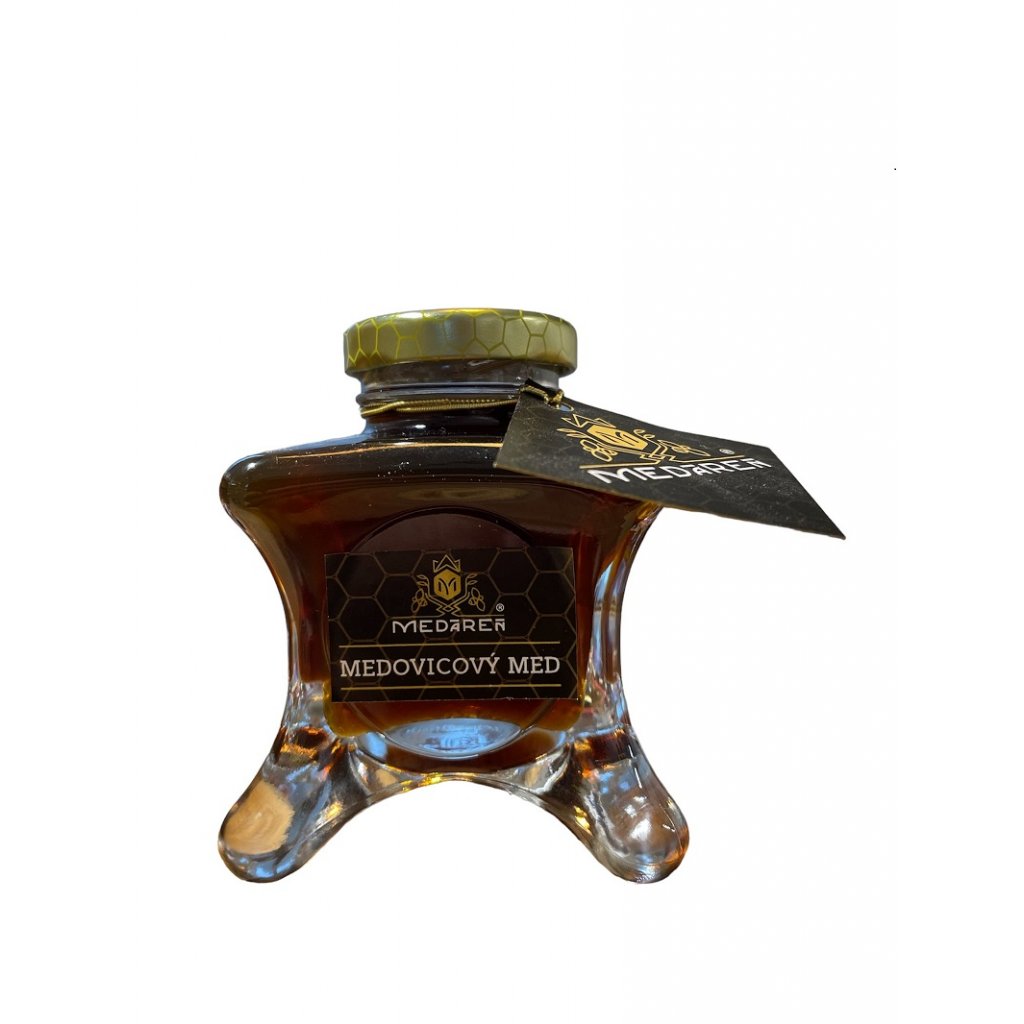 Medovicový med "4 nohy" 150g je vynikajúci med s bohatou a intenzívnou chuťou, ktorá je charakteristická pre medovicu. Tento med je získavaný z medovice stromov. Balenie dodáva tomuto medu moderný a elegantný vzhľad, čo ho robí skvelým darčekom pre blízkych a priateľov.